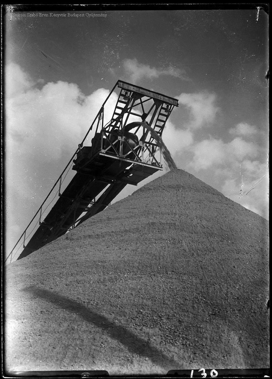 [Kotrás a Dunán, szállítószalag, sóderdomb]