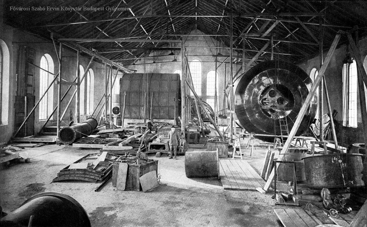 Főgázmérők szerelés alatt Az óbudai gázgyárban