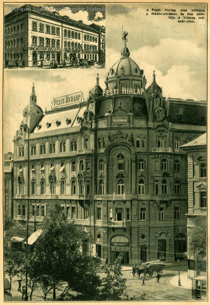 A Pesti Hírlap első otthona a Nádor utcában és mai palotája a Vilmos császár úton