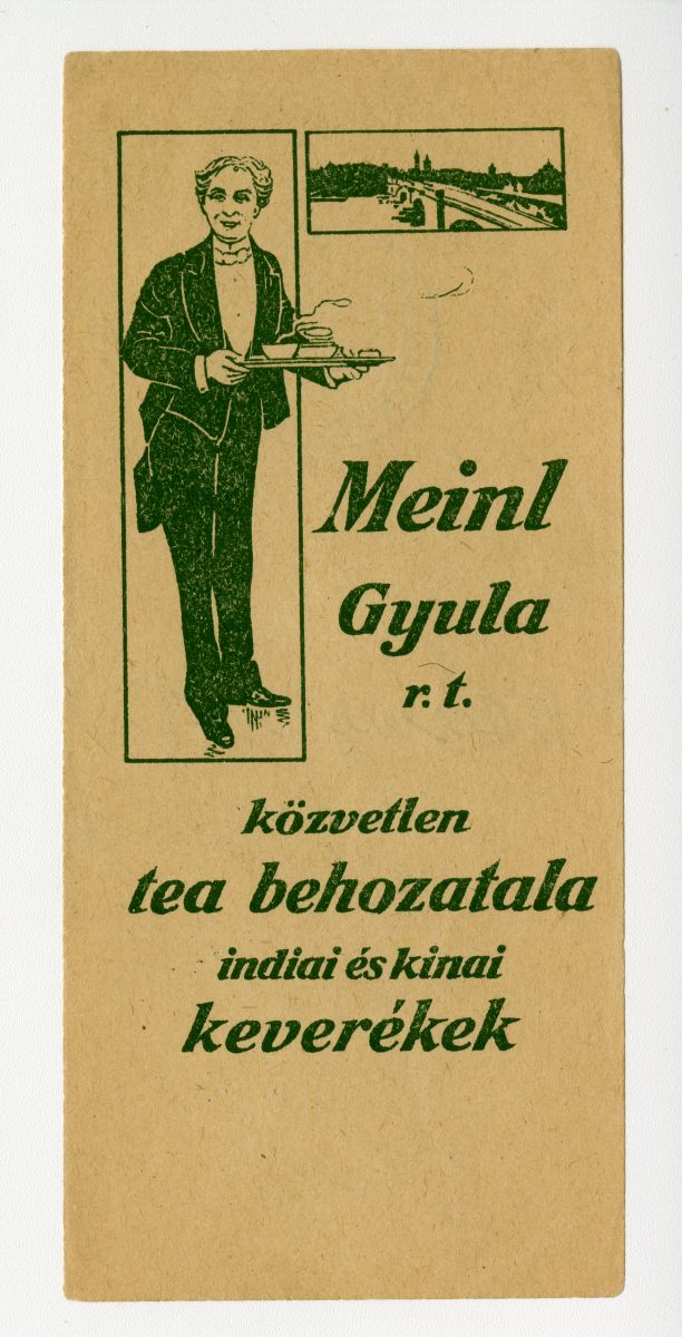 élvezeti cikk, tea, főzés, férfi, pincér, tálca, csésze, reklámnyomtatvány, kisnyomtatvány, aprónyomtatvány, számolócédula