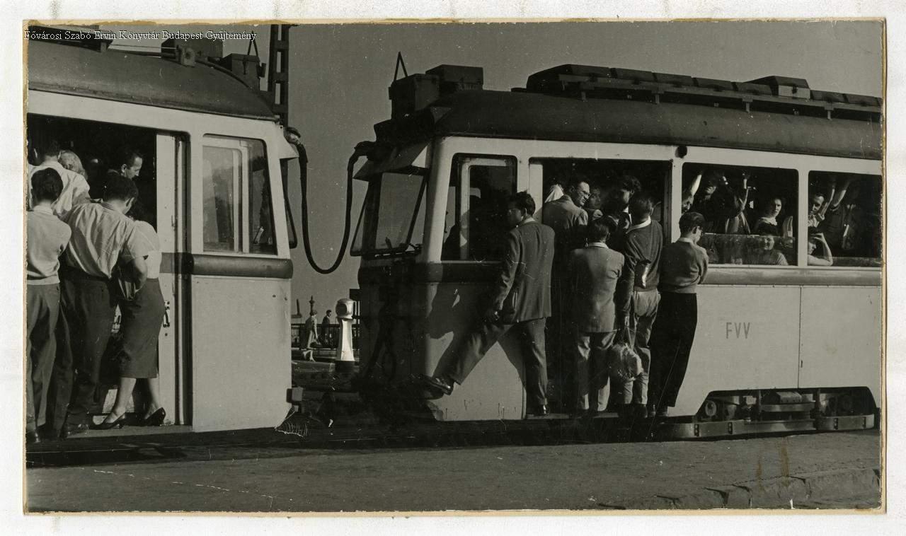 közúti villamos, tömegközlekedés, néptömeg, sajtófotó, 1960-as évek