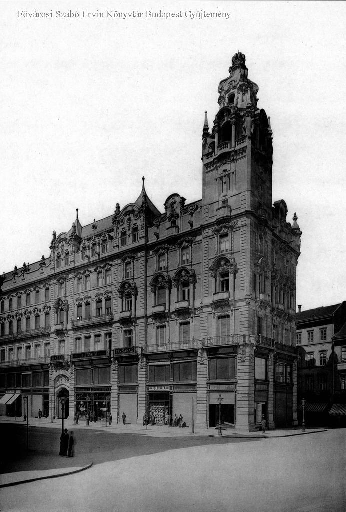 bérház, üzlet, lámpa, ember, épületkép, külső felvétel, 1901