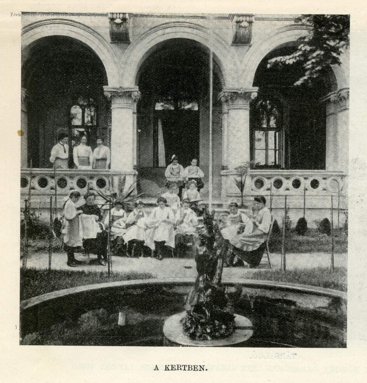 középfokú oktatás, magániskola, református, alapítványi iskola, lány, udvar, kert, játék, 1908