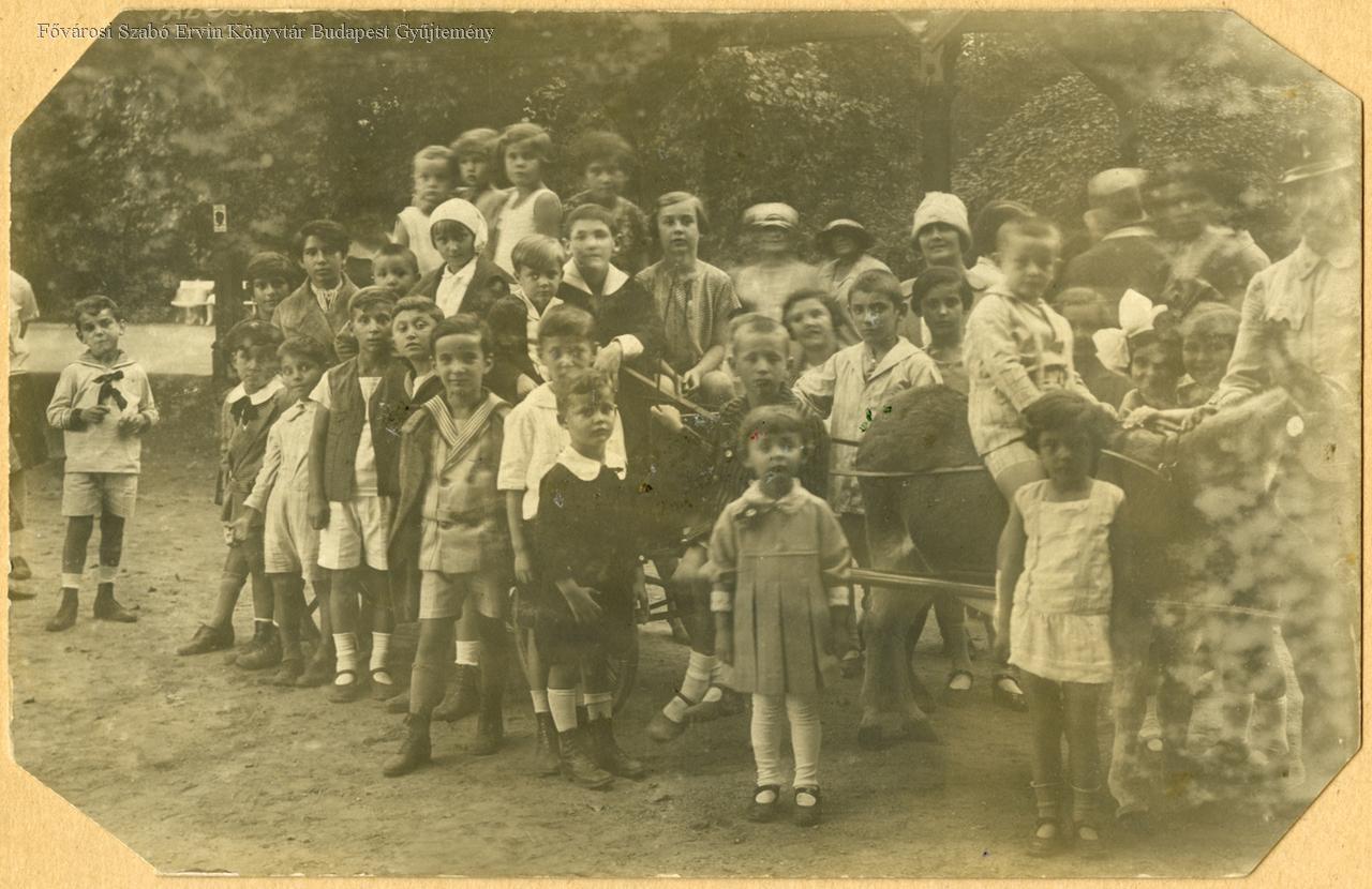 [Gyermekcsoport csacsifogattal a Margitszigeten, 1927. szeptember 22.]