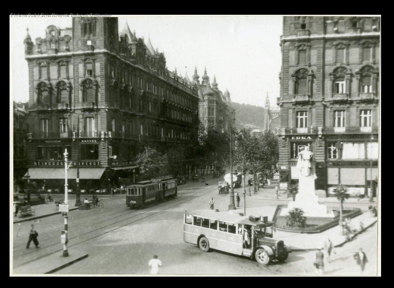 utcakép, szobor, kávéház, villamos kocsi, autóbusz, lámpa, 1941-ig