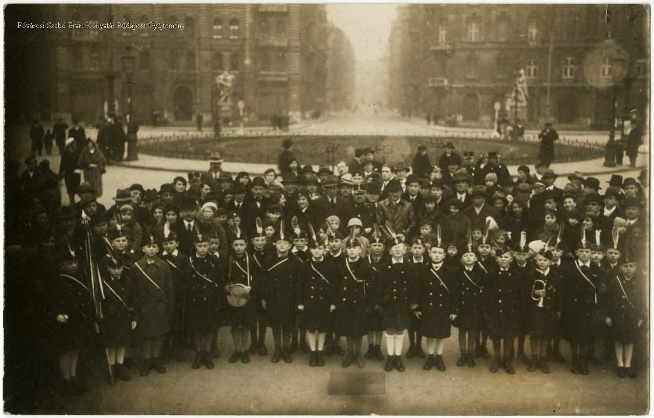 tanuló, fiú, néptömeg, közönség, egyenruha, revizionizmus, irredentizmus, megemlékezés, eseménykép, csoportkép, 1920-as évek, 1930-as évek, Horthy-korszak
