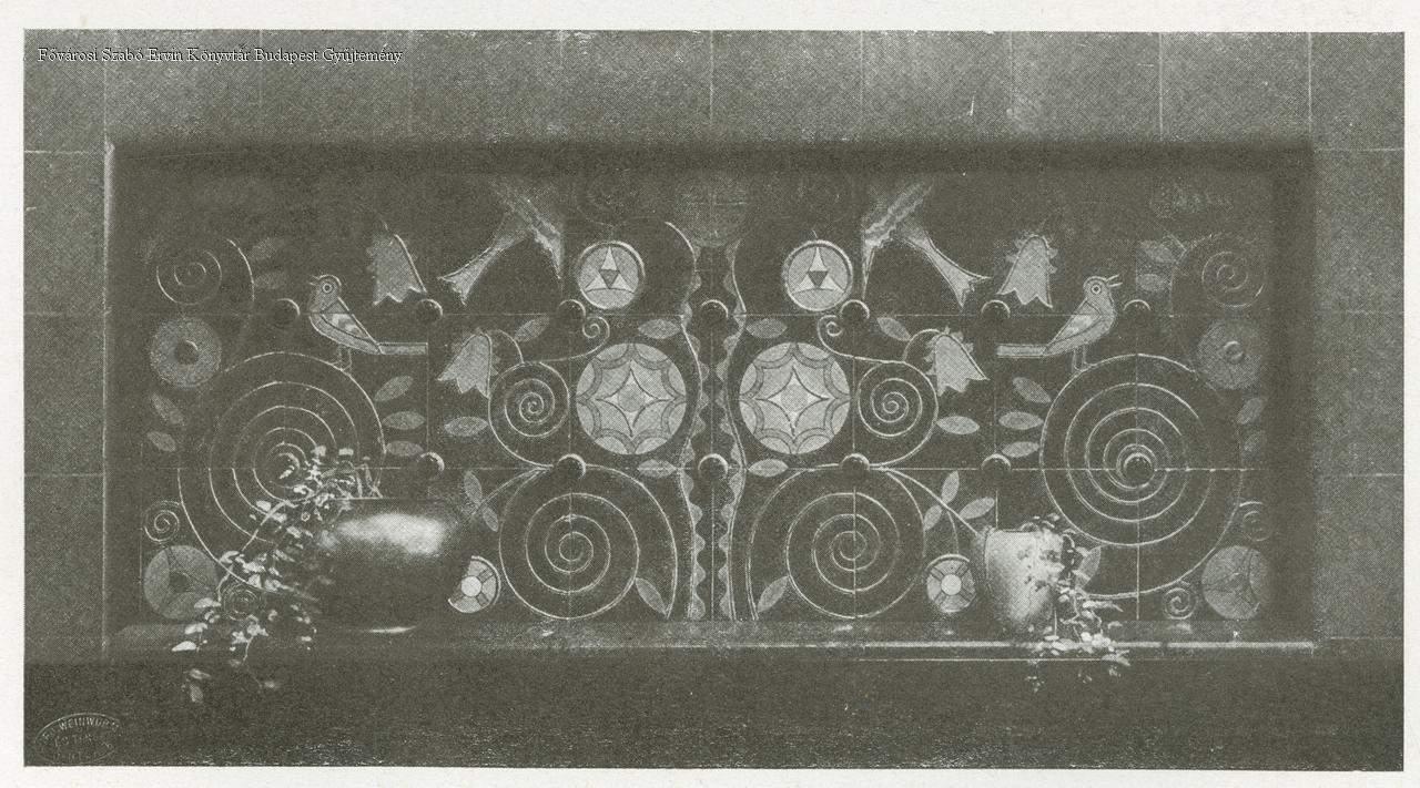 belső felvétel, családi ház, villa, majolika, falidísz, 1912