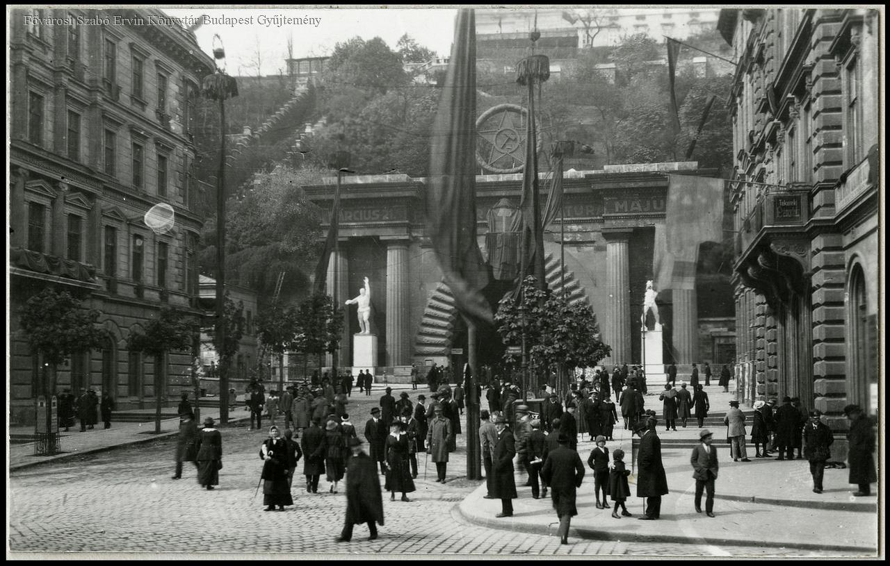 alagút, Tanácsköztársaság, május 1., ünnepség, dekoráció, jelkép, politikai propaganda, szobor, néptömeg, 1919