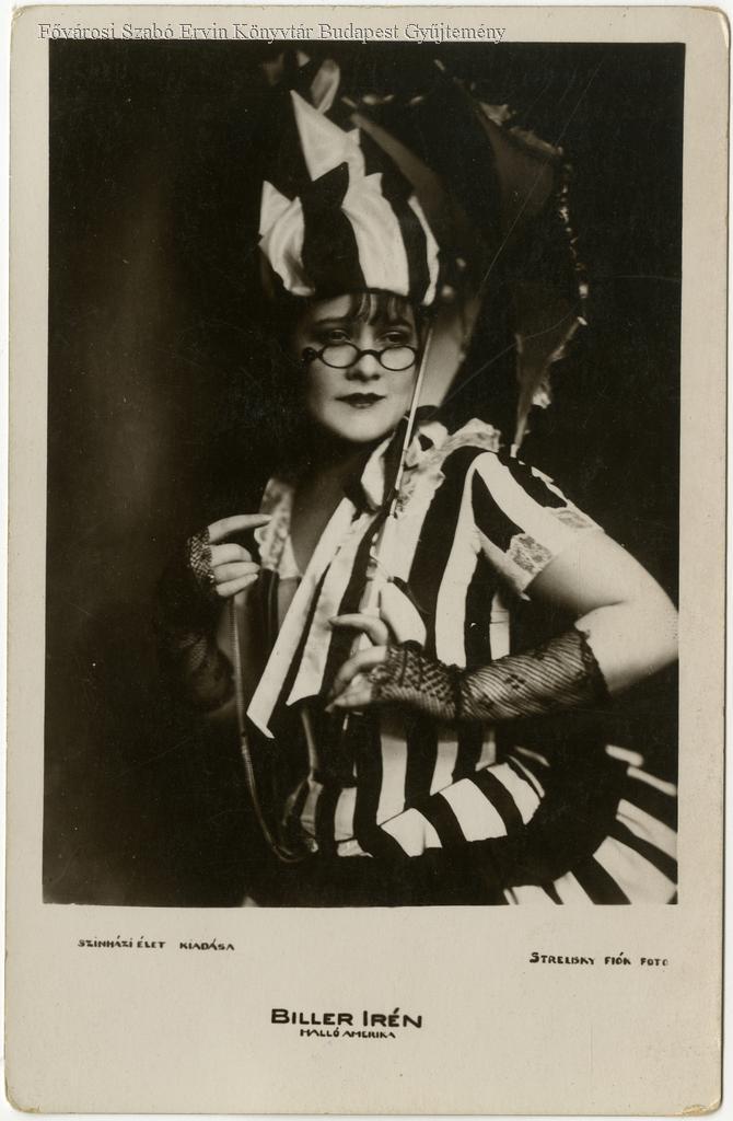 képes levelezőlap, színész, nő, színházi jelmez, revü, műtermi portré, derékkép, szerepkép, 1925