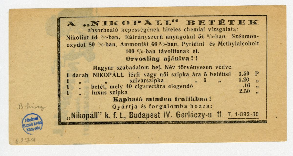 cigaretta, dohány, dohányáru, szipka, nikotin, szűrő, reklámnyomtatvány, kisnyomtatvány, aprónyomtatvány, számolócédula