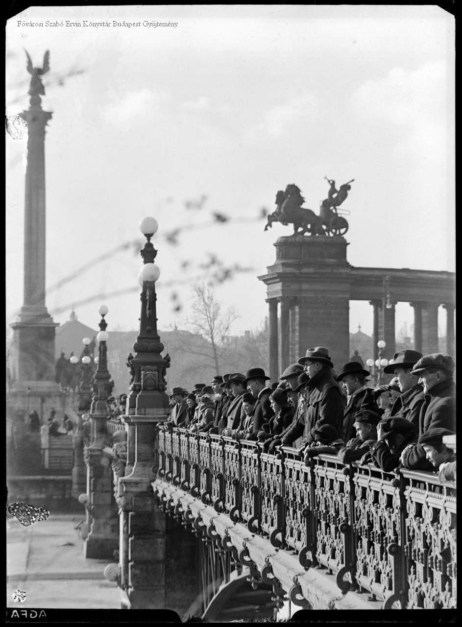 közönség, néptömeg, híd, emlékmű, jelenetkép, két világháború közötti időszak, 1930