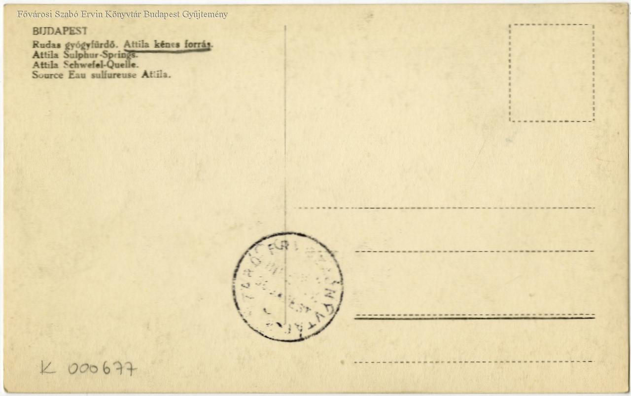 Budapest Rudas Gyógyfürdő : Attila kénes forrás = Attila Sulphur-Springs = Attila Schwefel-Quelle = Source Eau sulfureuse Attila