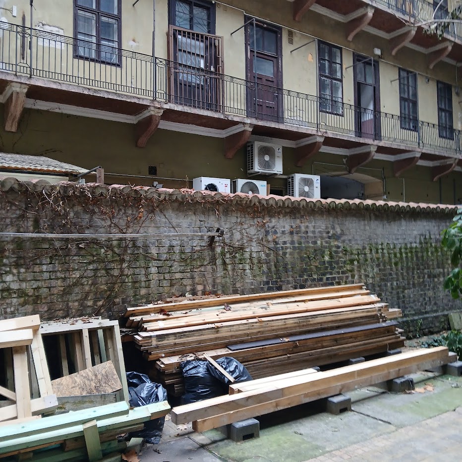 Kiáltó az ellentét a ház szépen tatarozott külső homlokzata és a teljesen elhanyagolt udvar és lépcsőház között. Az utóbbi felújítása nagyon esedékes lenne. A szomszéd házzal, (Király utca 62.) közös udvart nyomasztóan rideg kőkerítés választja ketté.