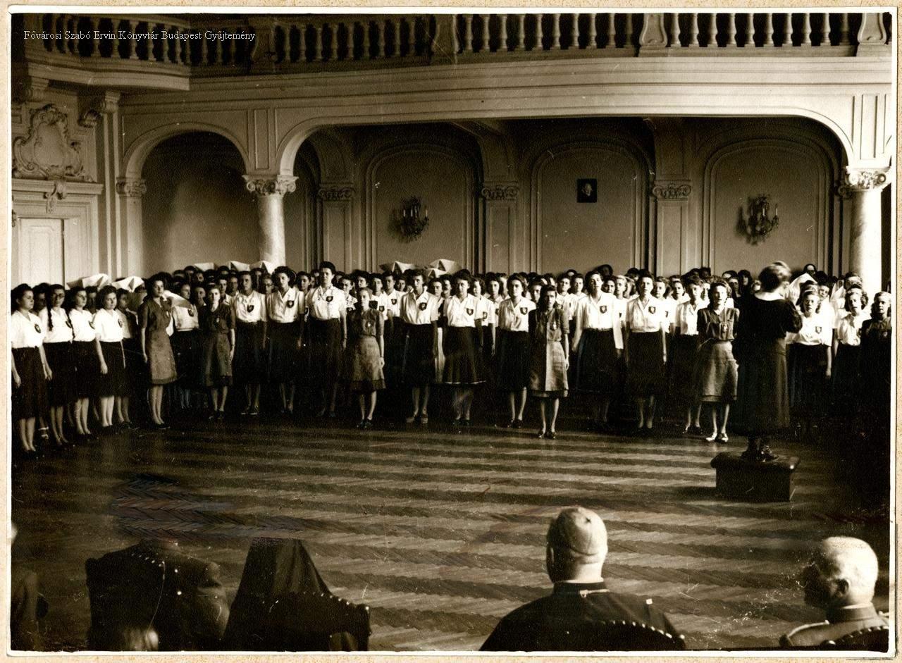 [Leventeleányok esküje] [Leánykórus a budai Szent Margit Gimnázium dísztermében]