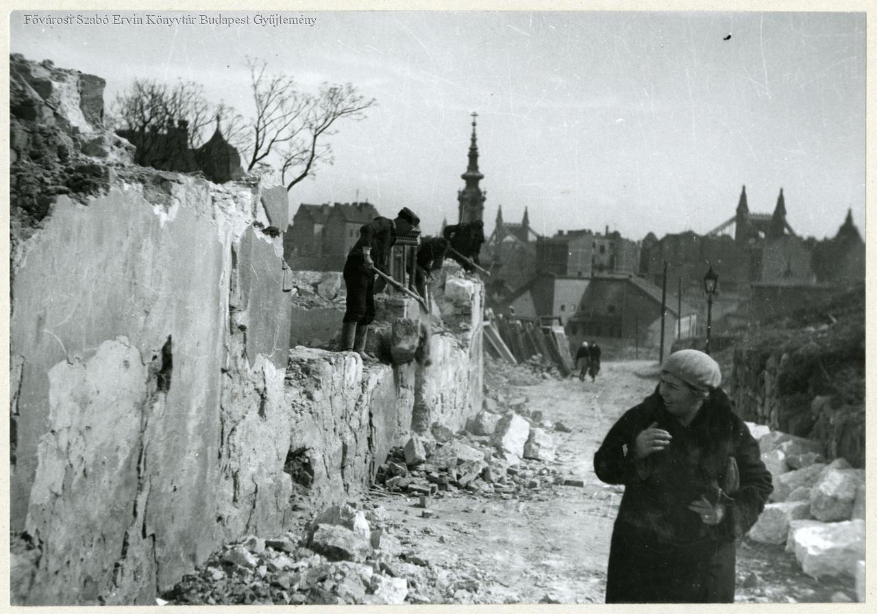 utcakép, lakóépület, épületmaradvány, épületbontás, munkavégzés, munkás, 1930-as évek