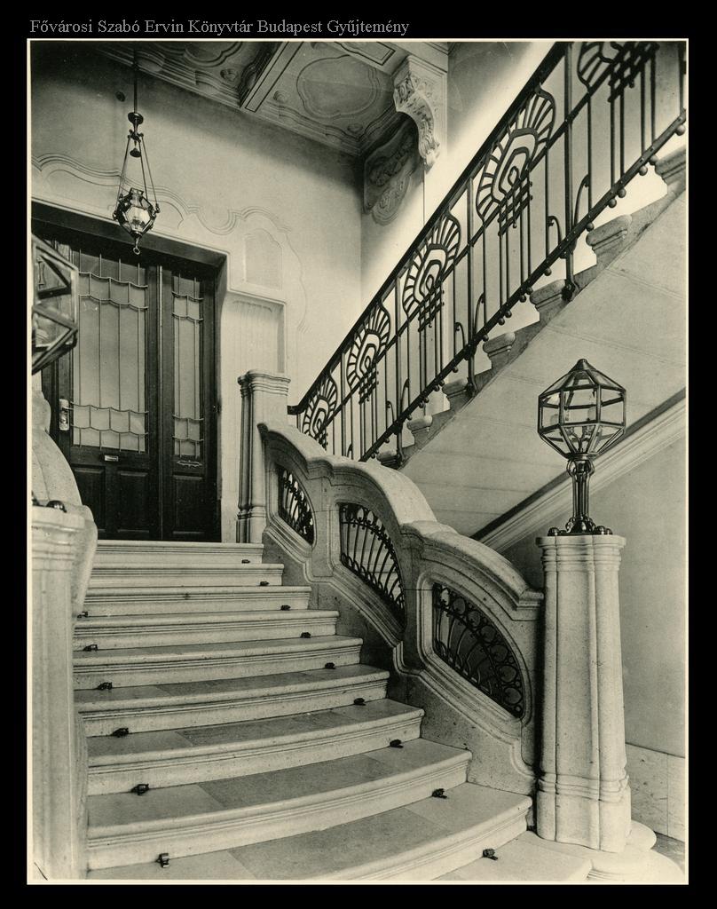 bérház, lépcsőház, lámpa, szecesszió, vasművesség, épületkép, belső felvétel, 1900-as évek