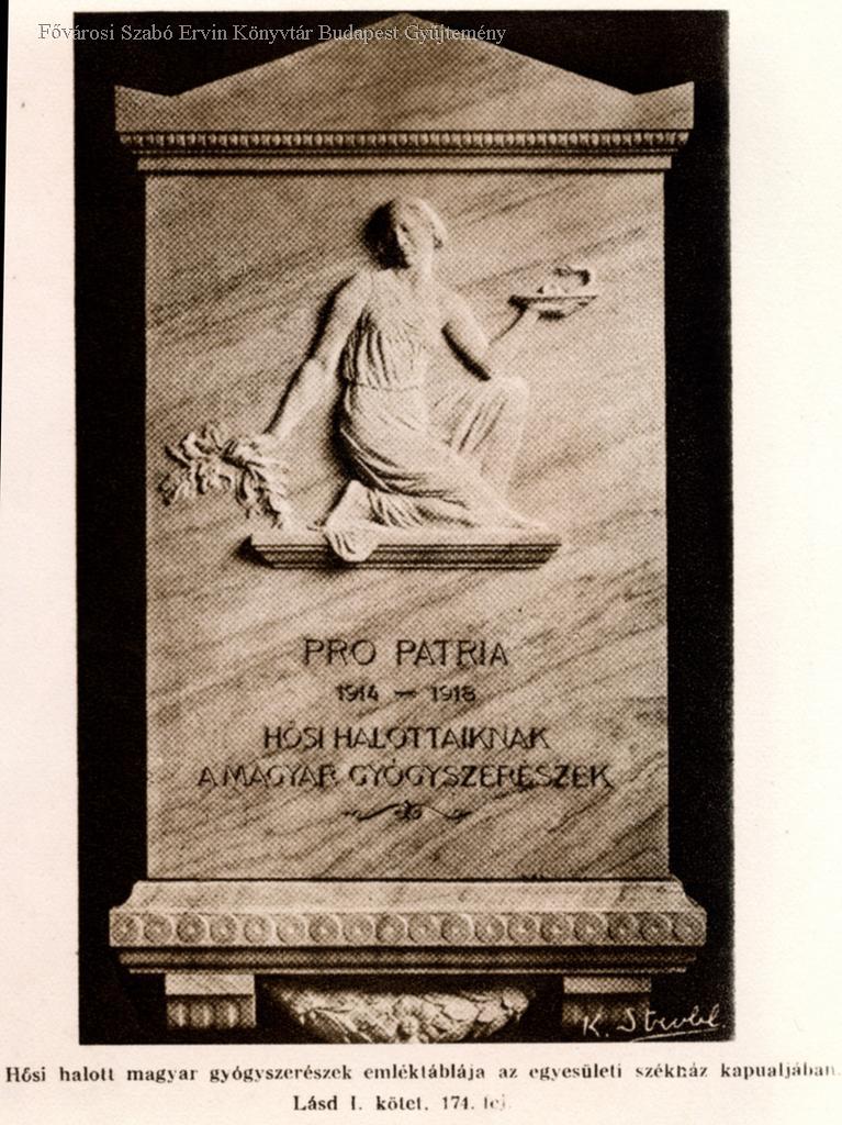 emléktábla, gyógyszerészet, első világháború, belső felvétel