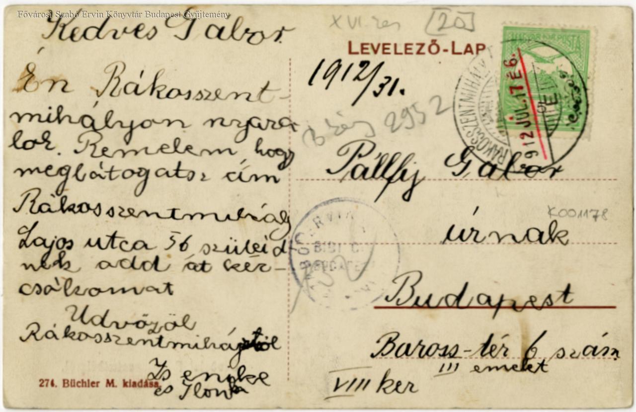 képes levelezőlap, utcakép, fürdő, bejárat, 1912