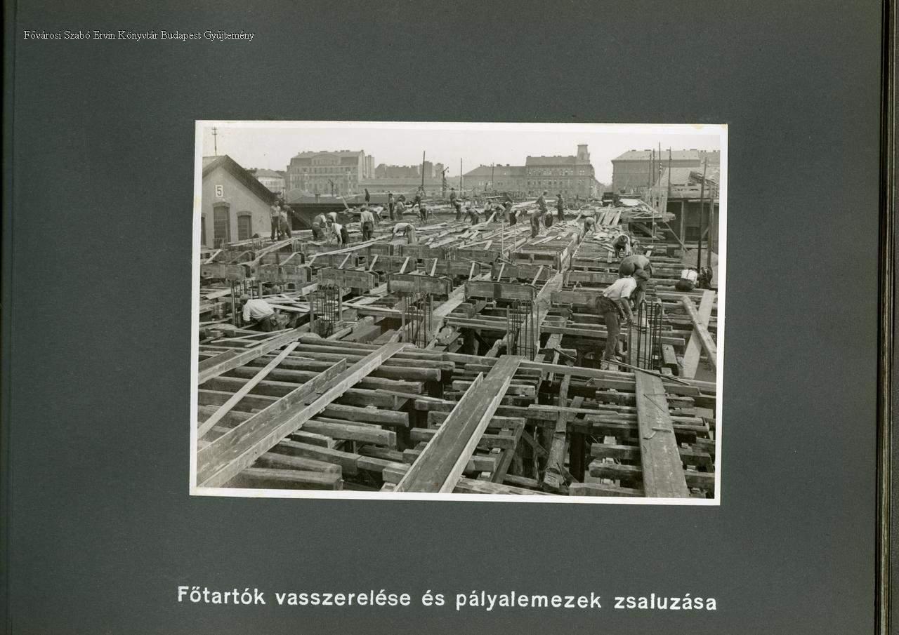 Főtartók vasszerelése és pályalemezek zsaluzása