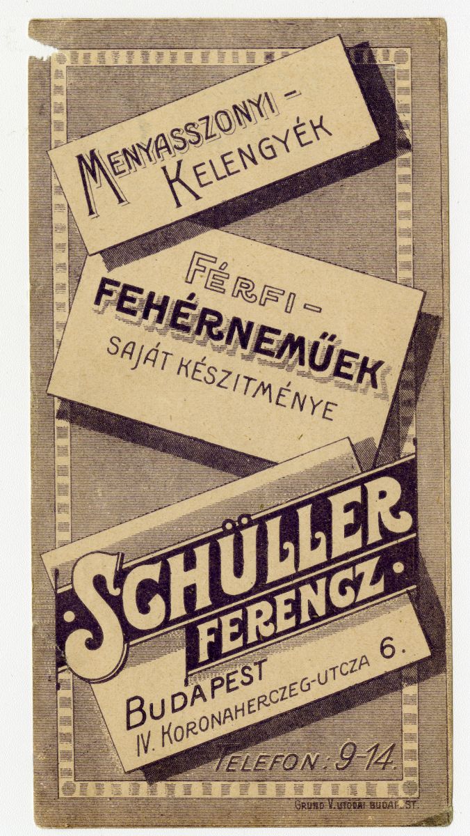 menyasszony, kelengye, férfiruházat, alsóruházat, fehérnemű, üzlet, reklámnyomtatvány, kisnyomtatvány, aprónyomtatvány, számolócédula