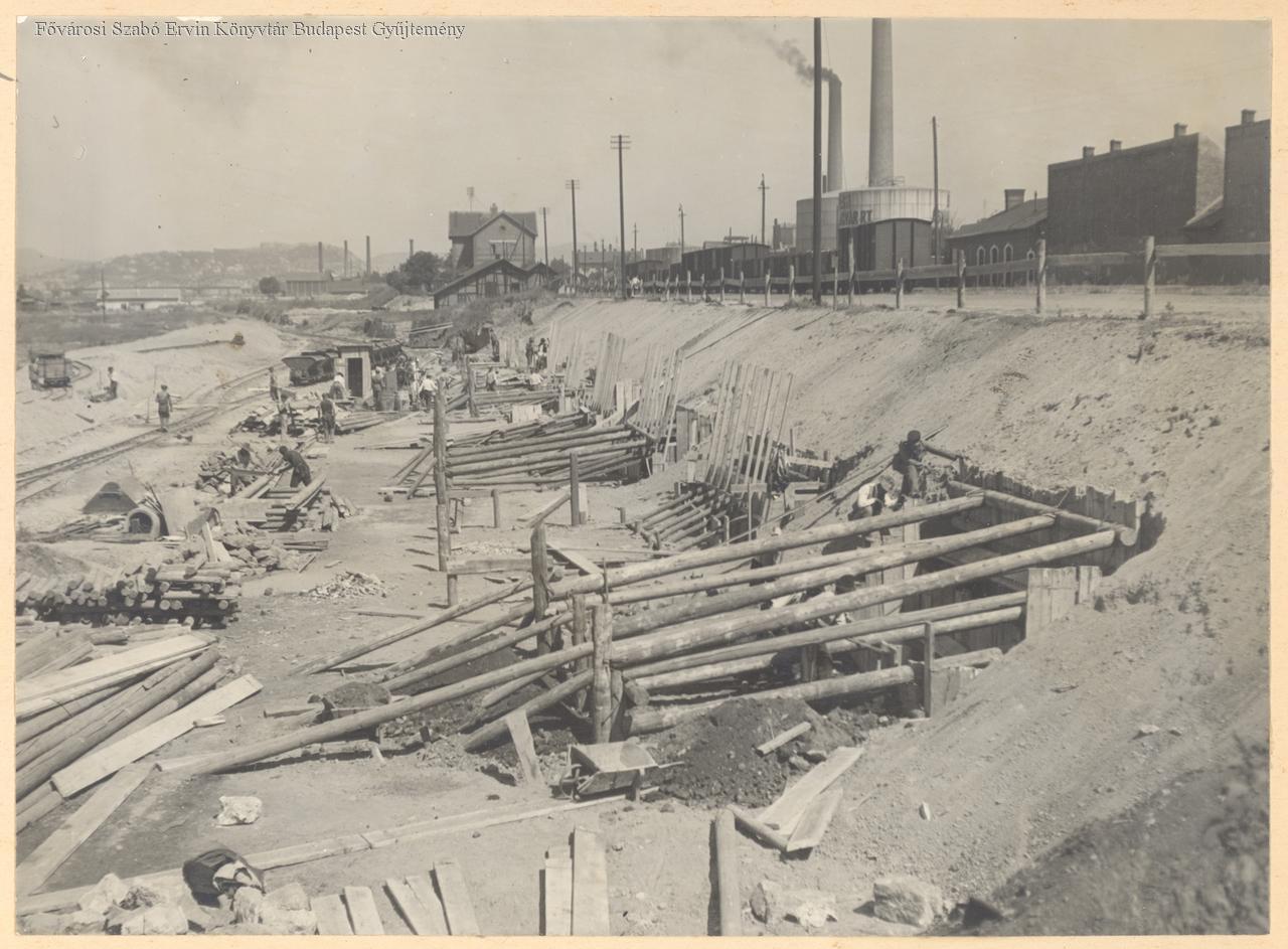 Támfal építése, kilátással a Soroksári úti gyárakra
