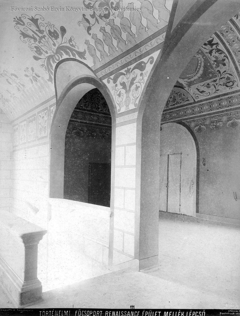 millennium, neoreneszánsz, historizmus, falidísz, lépcsőház, épületkép, belső felvétel, 1896