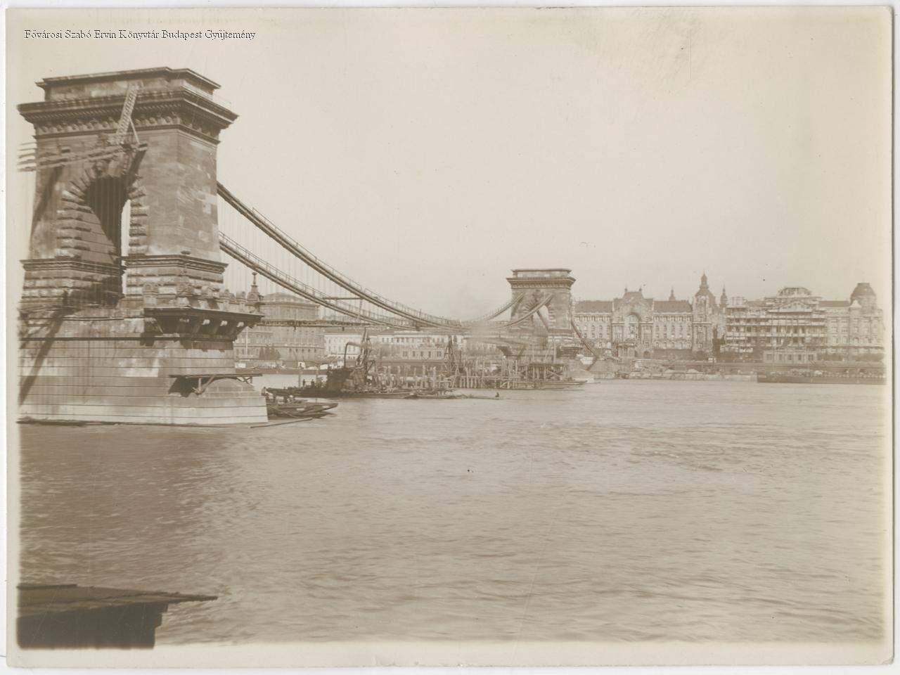 A Lánchíd átépítése, vasszerkezetének megerősítése. Teljes rekonstrukció: 1914. február 3-tól 1915. november 26-ig.