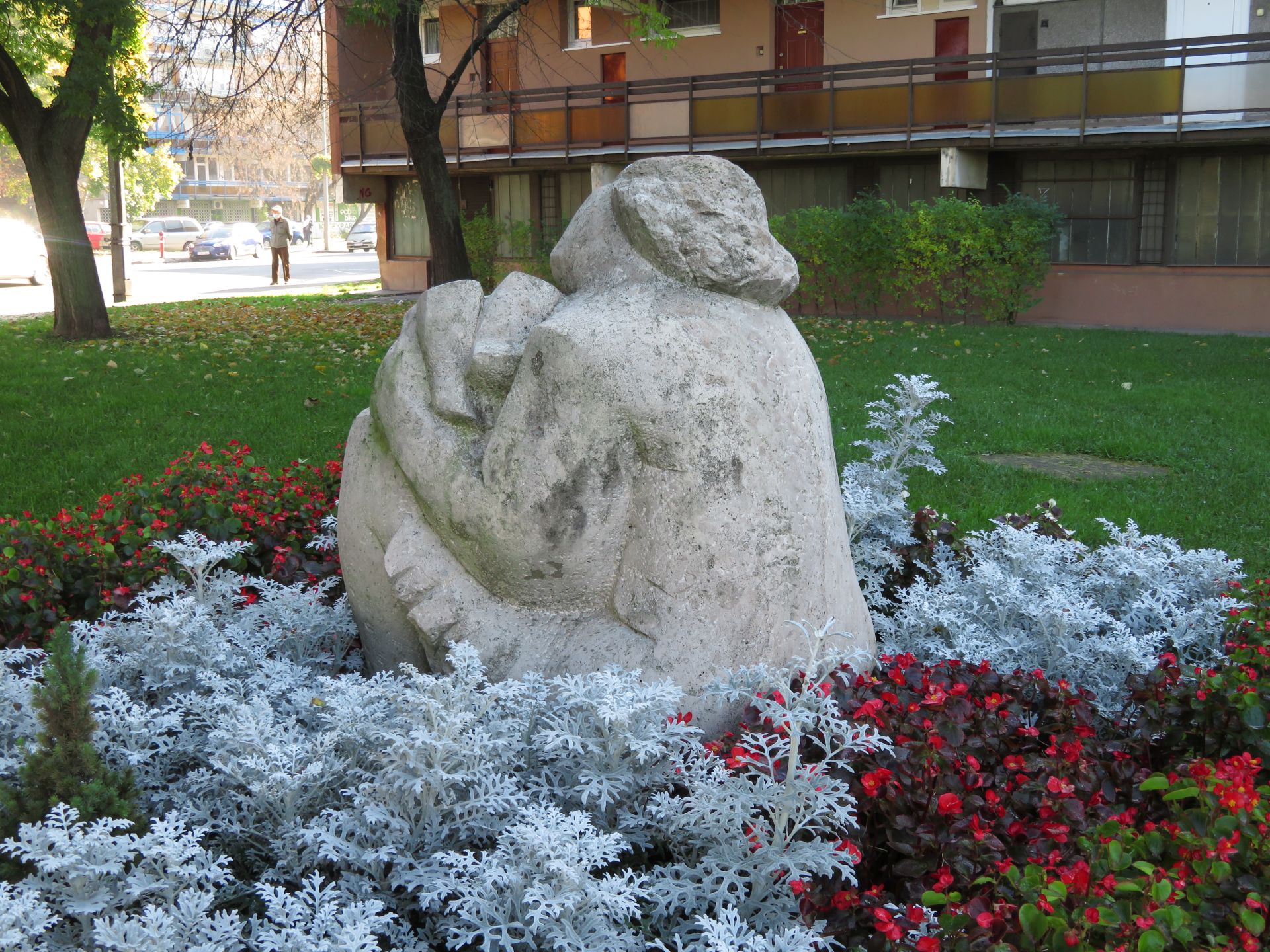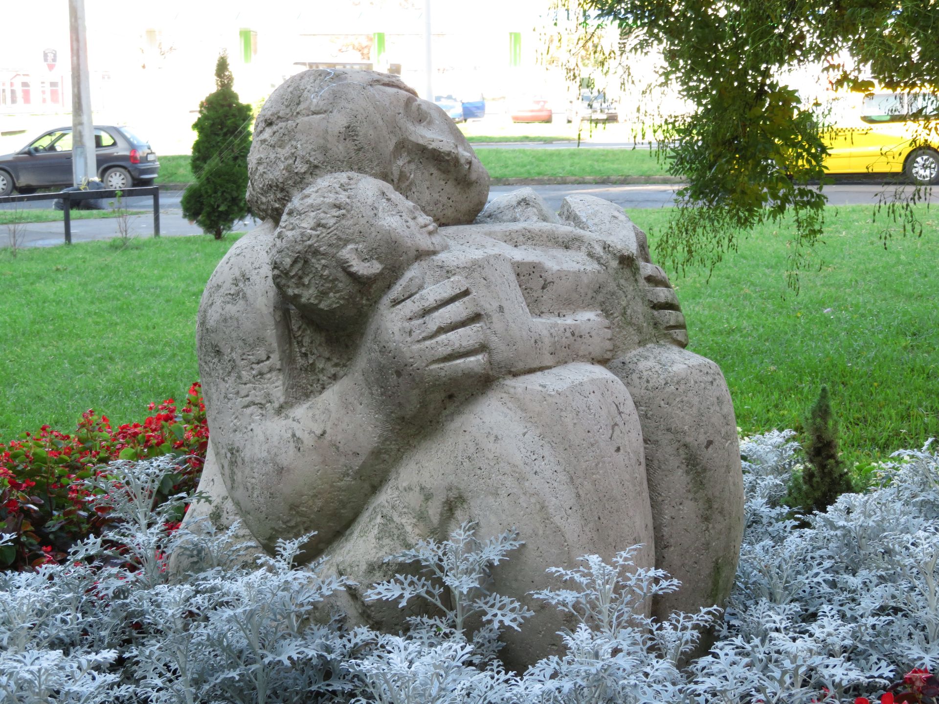 Seregi József (1939- ) Anya gyermekével című alkotása mészkőből készült. Egy anyát mintáz, aki ül és nagy szeretettel térdén hintáztatja kisgyermekét.