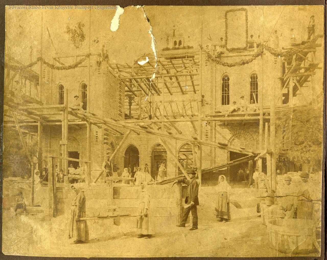 külső felvétel, építkezés, férfi, nő, női munka, munkás, munkásnő, zsinagóga, ünnepség