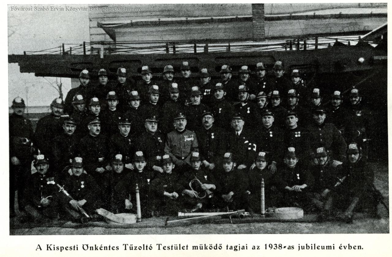 A Kispesti Önkéntes Tűzoltó Testület működő tagjai az 1938-as jubileumi évben