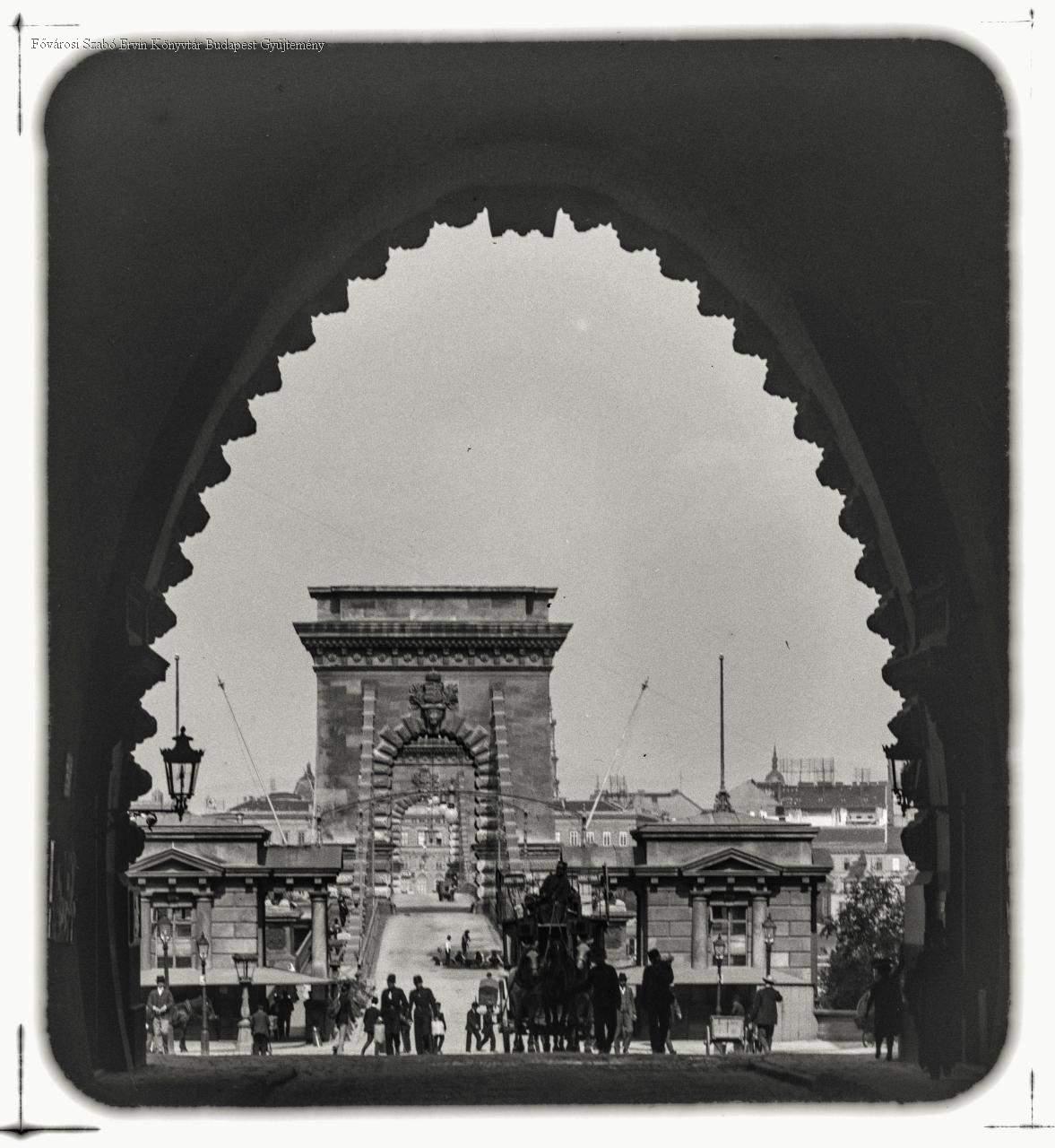 [Lánchíd budai hídfő az Alagút felől] [Chain Bridge Buda side from the Tunnel]