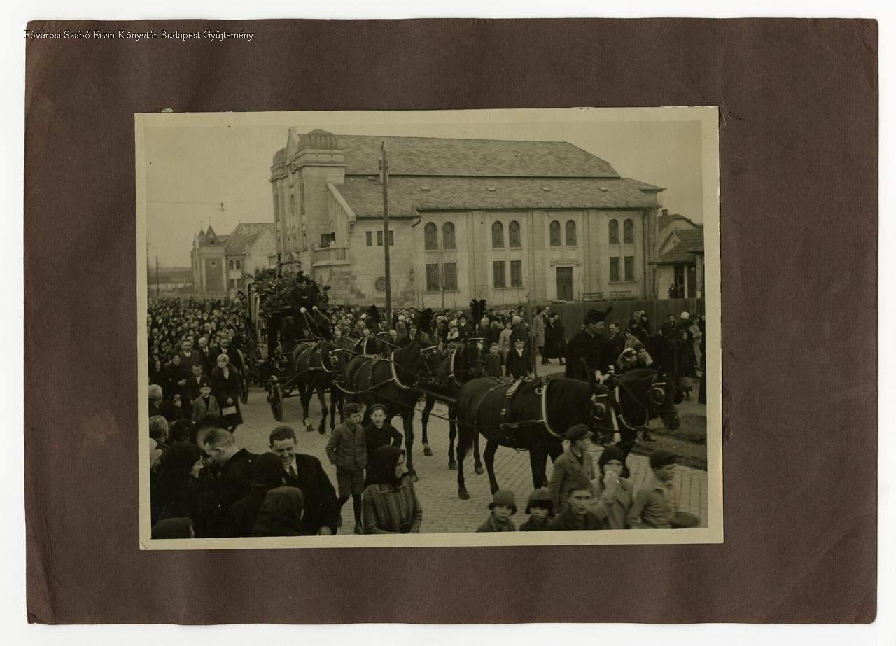 temetési menet, halotti szokás, néptömeg, zsinagóga, hintó, lovas kocsi, 1920-as évek, 1930-as évek