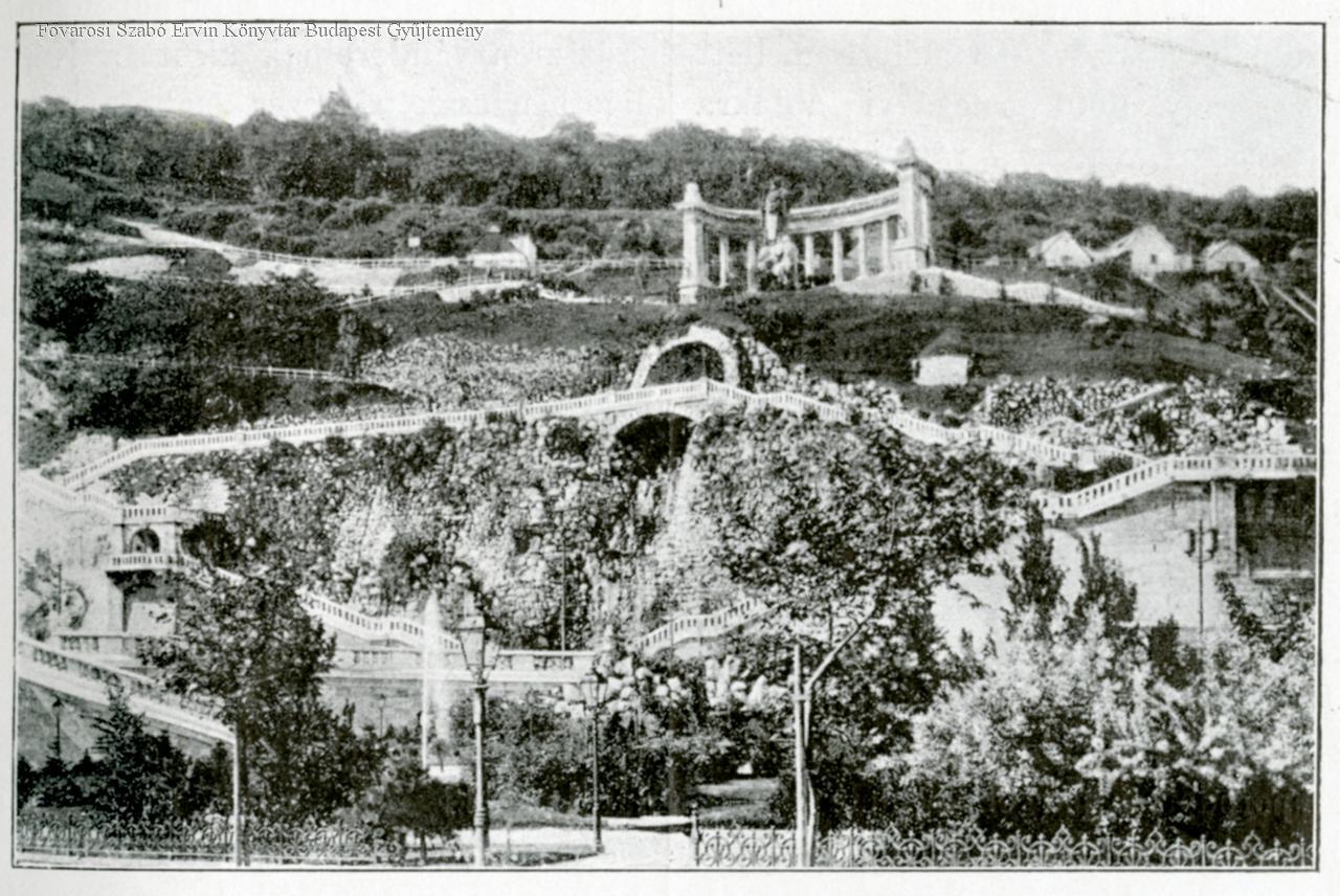 A Gellért-rakparti park befejező részlete Gellért szobra és a vízesés /