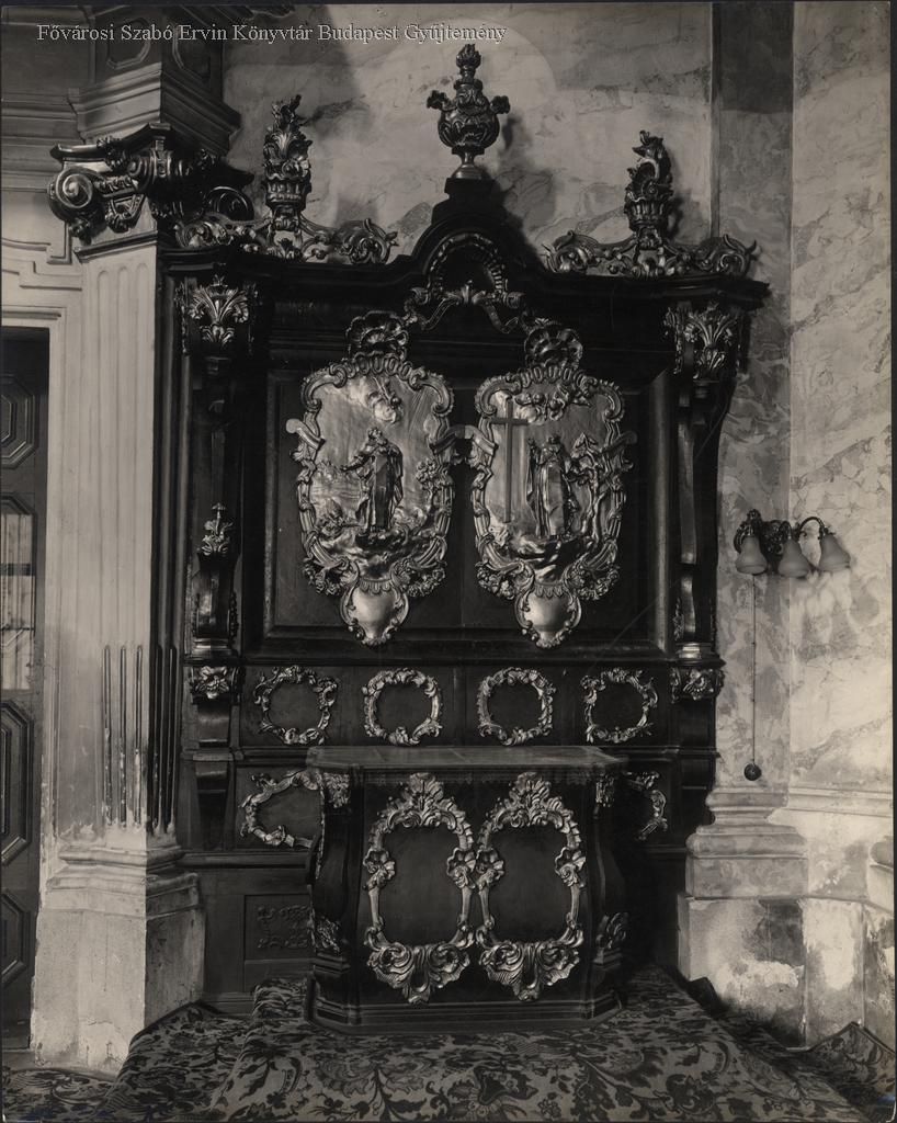 [Egyetemi templom szentély bal oldala faragott díszekkel]