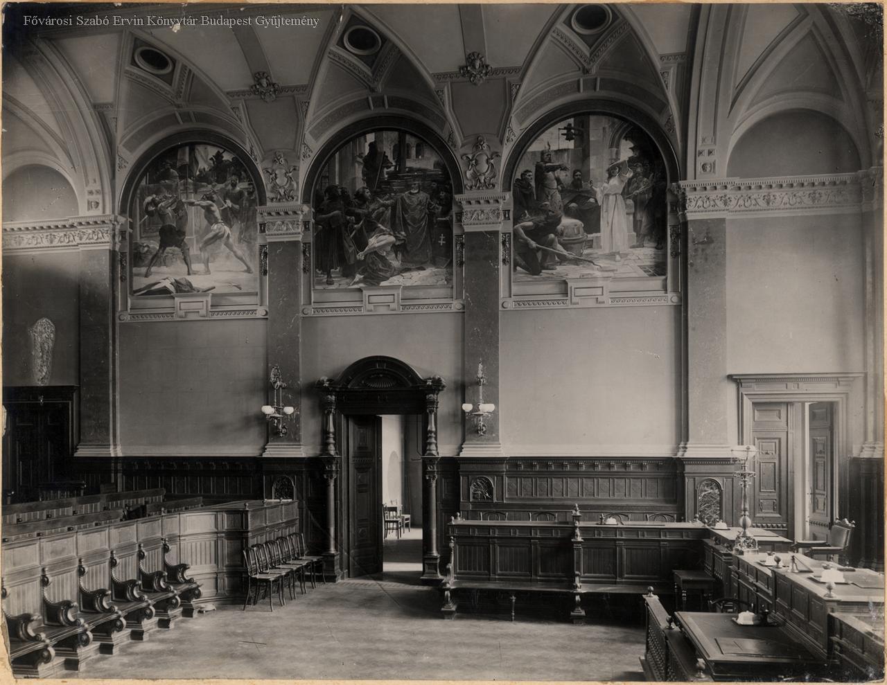bíróság, bútor, falfestmény, épületkép, belső felvétel, 1890-es évek