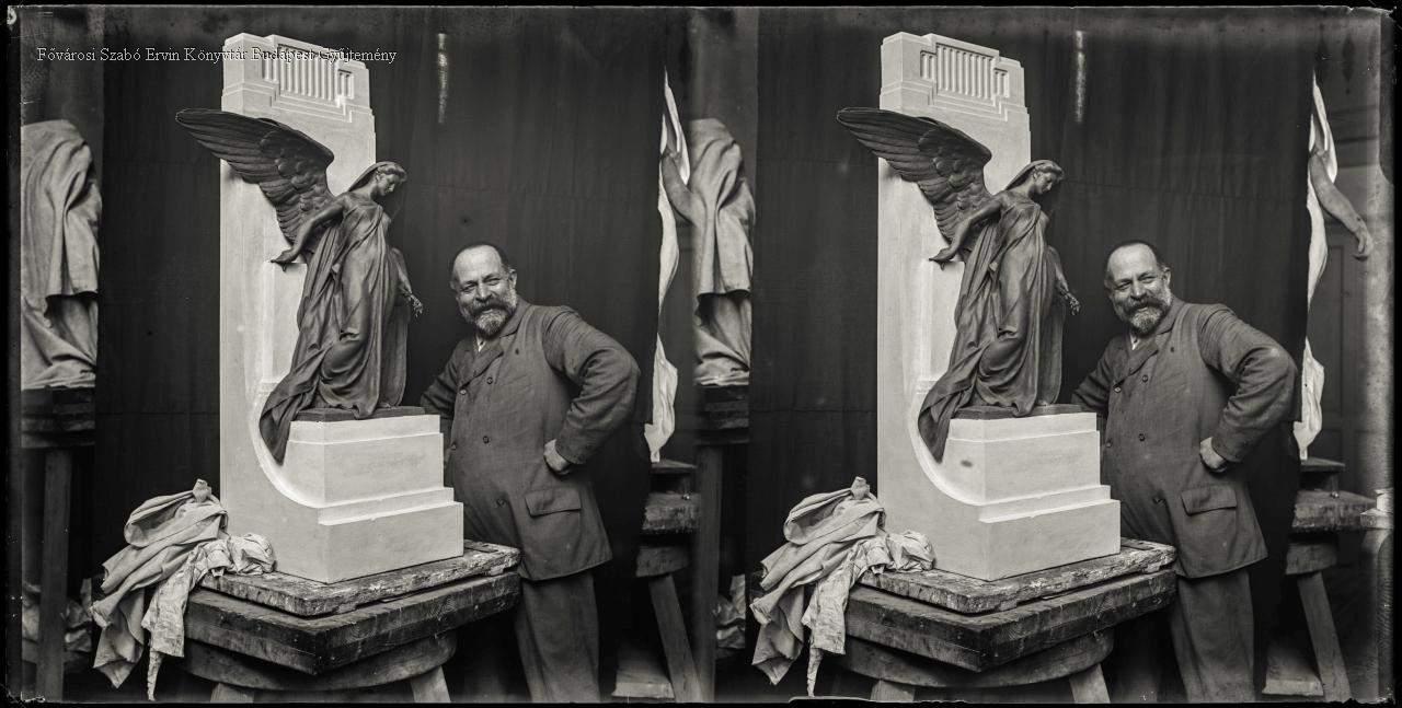 [Donáth Gyula egy síremlék tervével, műtermében] [Gyula Donáth with a plan of a tomb in his studio]