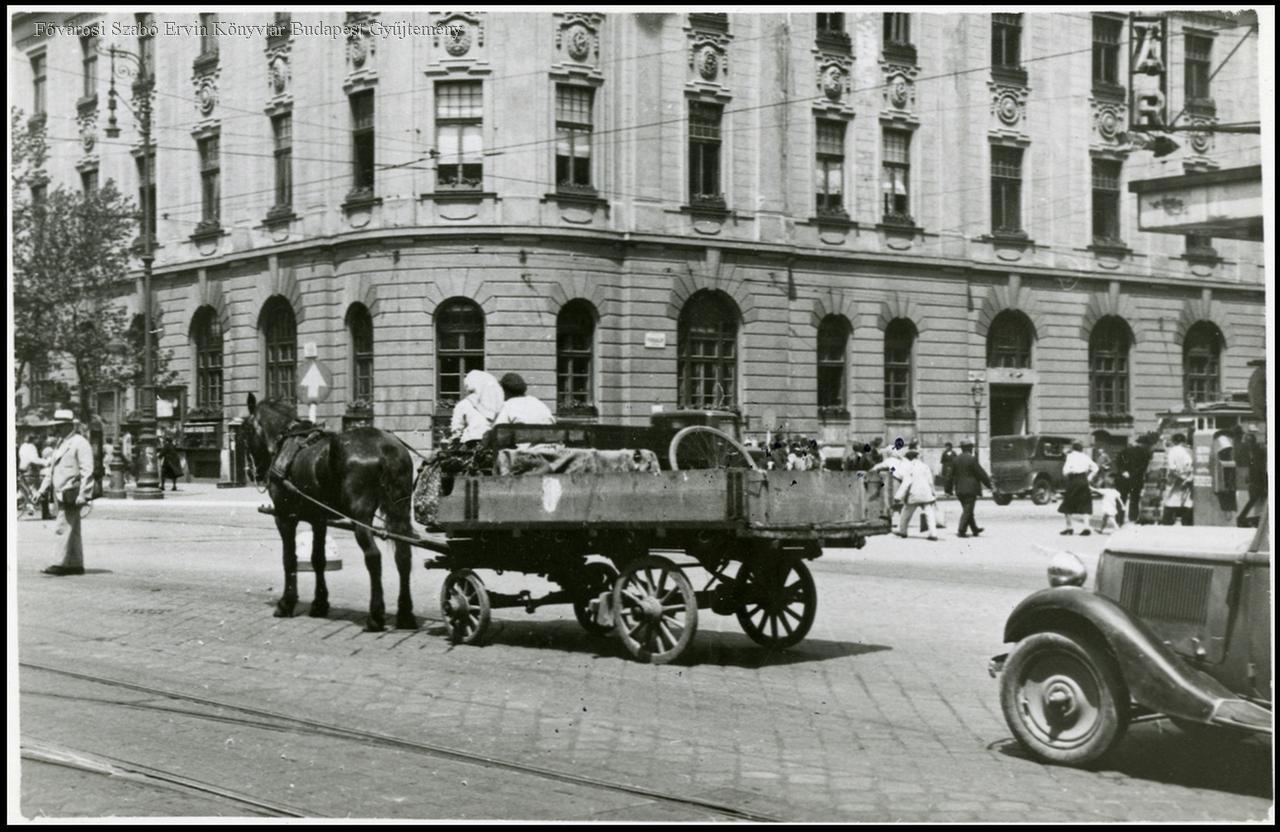 utcakép, lovas kocsi, személyszállító gépjármű, 1925