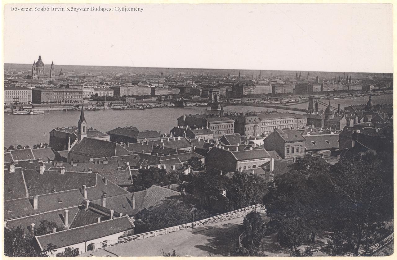 Kilátás a Hunyadi János útról Pest felé. Vizivárosi háztetők