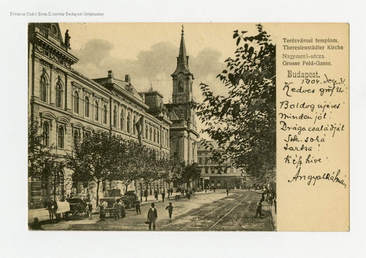 Budapest Terézvárosi templom : Theresienstädter Kirche : Nagymező-utcza : Grosse Feld-Gasse : levelező lap