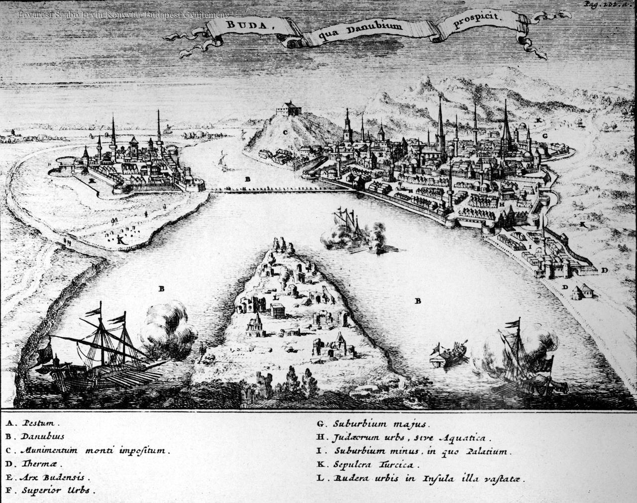 Buda qua Danubium prospicit [Buda és Pest látképe a török uralom alatt]