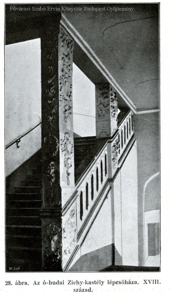 1911-ben dohányraktár. Lépcsőház, faragványos pillér