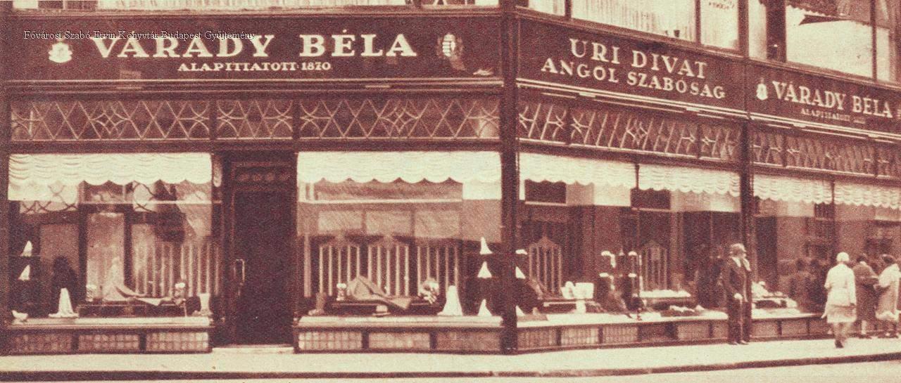 [Várady Béla úridivatüzletének portálja a Váci és a Türr István u. sarkán]