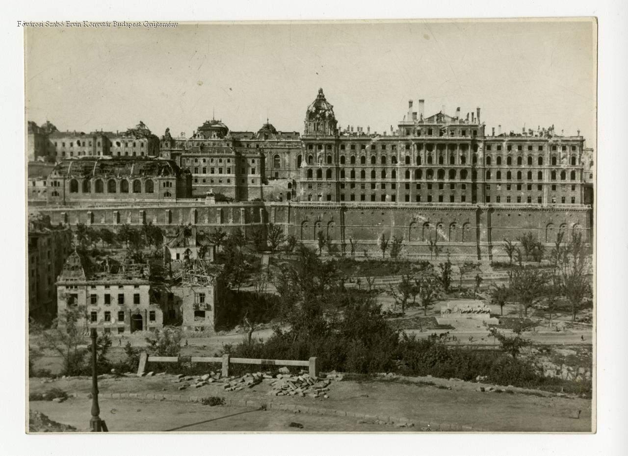 palota, lakóépület, romos építmény, háborús kár, második világháború, külső felvétel, látkép, 1940-es évek