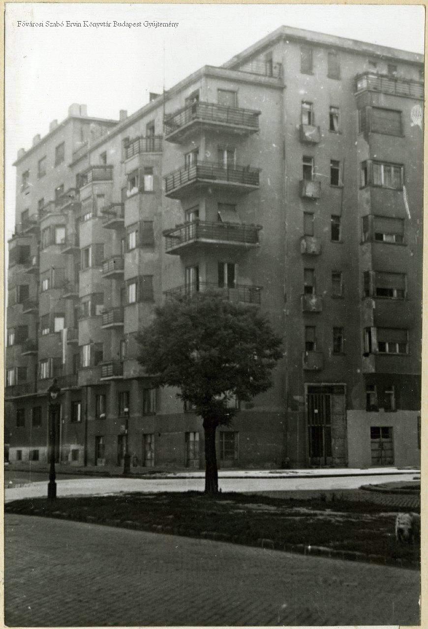 [Újpesti rakpart, szemben a sarkon az 1933-34-ben épült Sziget (Radnóti Miklós) utca 45.]