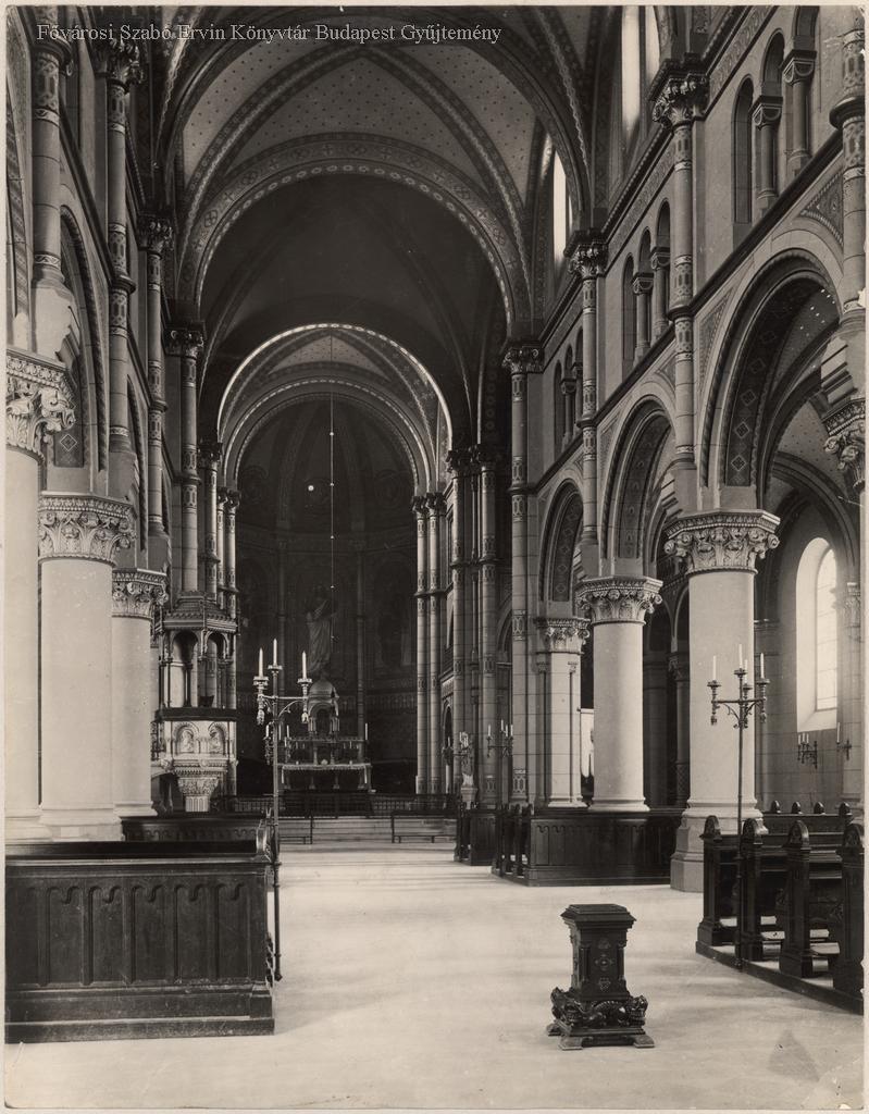 templom, katolikus egyház, historizmus, oltár, bútor, egyházi művészet, persely, épületkép, belső felvétel, 1890-es évek
