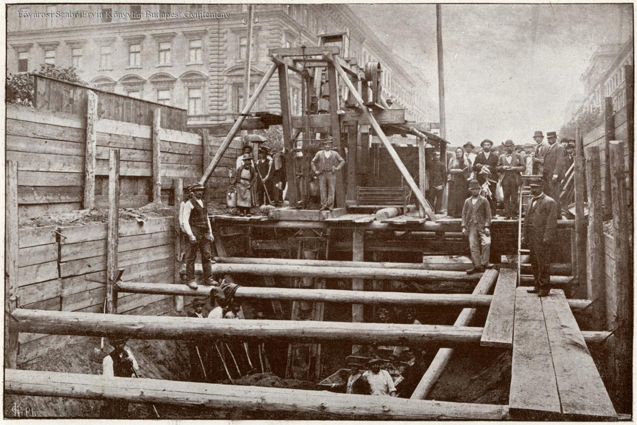 földalatti vasút, építés, munkavégzés, kotrógép, állvány, munkás, külső felvétel, 1895