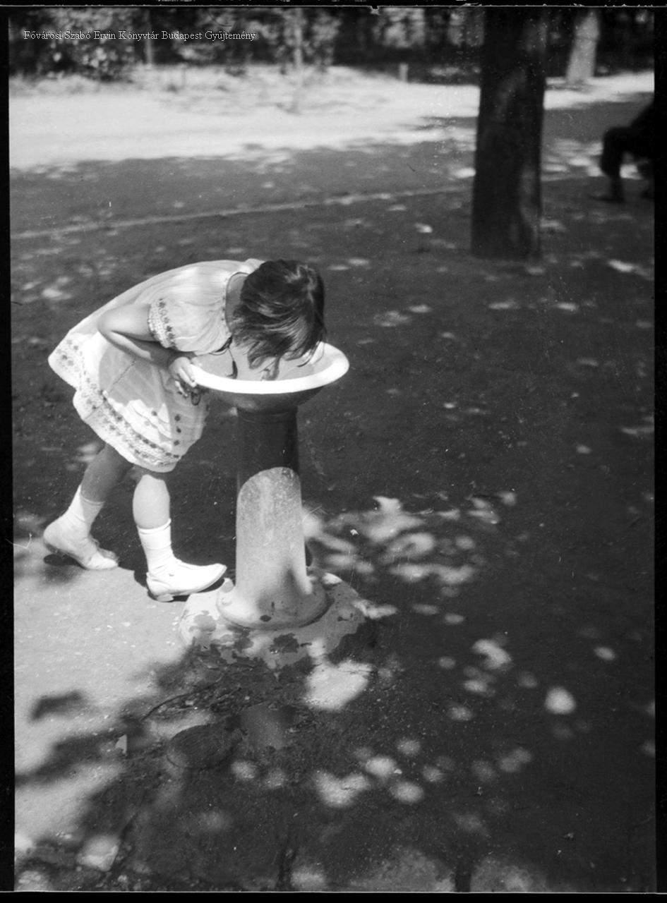 lánygyermek, park, vízcsap, jelenetkép, két világháború közötti időszak, 1938