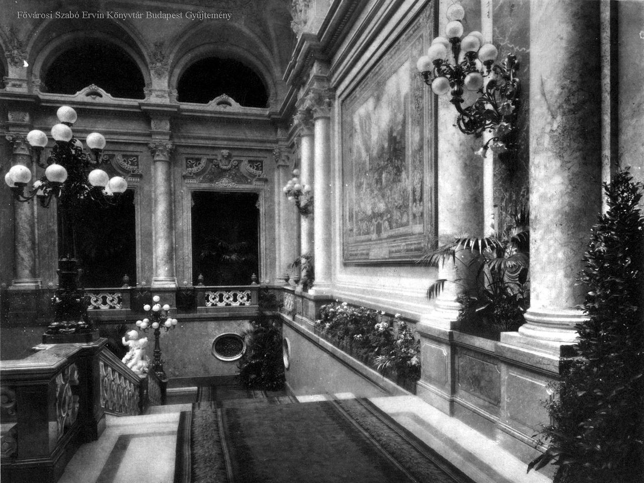 palota, udvartartás, lépcsőház, szobor, lámpa, épületkép, belső felvétel, 1912