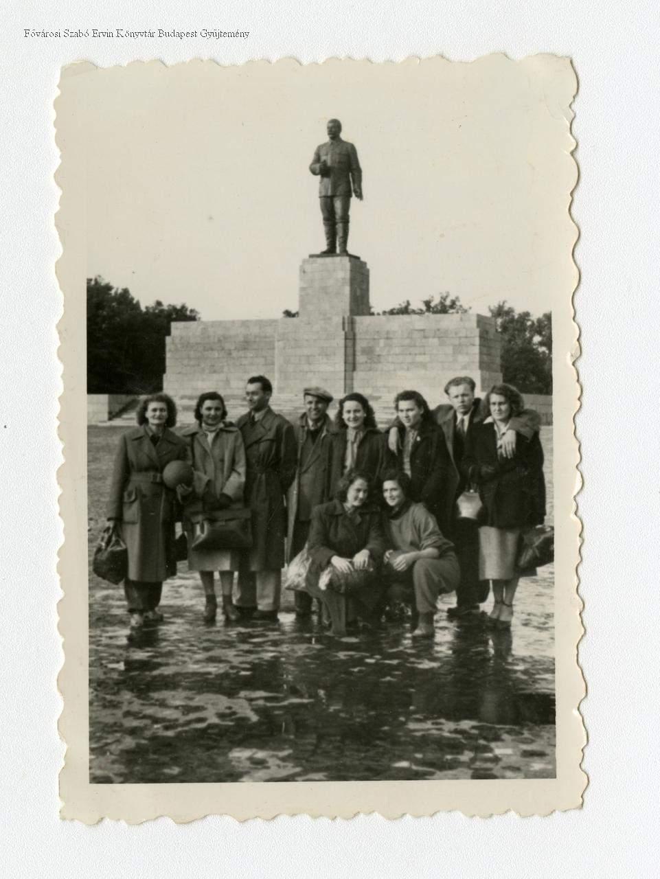 , férfi, szobor, emlékmű, csoportkép, amatőr fénykép, 1950-es évek, Rákosi-korszak