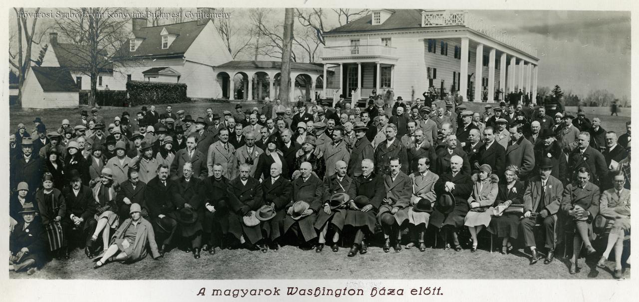 [A new york-i Kossuth-szobor avatására utazó budapesti küldöttség útja] a magyarok a Washington háza előtt